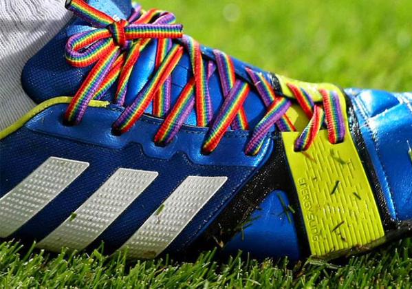 La Lupa del YA. El lobby gay sigue moviendo sus hilos. En este caso, sus cordones. Con el objetivo que salgan del armario futbolistas homosexuales (que al parecer no existen en este deporte) ha lanzado una campaña para que los futbolistas luzcan en sus botas cordones color arco iris.
