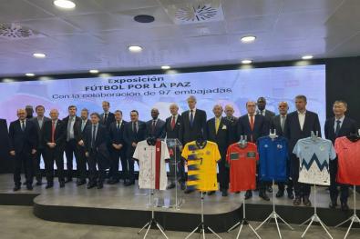 La Expo Fútbol por la Paz auspiciada por la Academia de la Diplomacia ha sido expuesta en la sede central de LALIGA en Madrid.Confeccionada con la colaboración de 100 embajadas que han donado las camisetas de sus selecciones nacionales, la exposición pretende demostrar que el deporte y en concreto el fútbol, es un medio para conseguir un mejor conocimiento entre las naciones y culturas y es a su vez un mensaje contra el racismo.