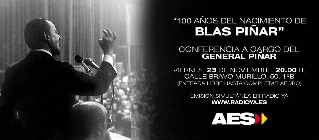 Fue el mejor orador del Congreso de los Diputados y, podemos decir ya hoy día que auténtico visionario del futuro que se avecinaba en España. Hace ahora cien años del nacimiento de Blas Piñar, y con tal motivo se llevará a cabo un homenaje con una conferencia a cargo de su hijo, el General Blas Piñar. Será el viernes 23 de noviembre a las 20.00 horas en la calle Bravo Murillo, 50 - 1ºB. Entrada libre hasta completar aforo.
