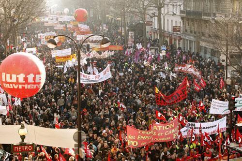 Todos los sindicatos franceses saldrán hoy unidos a la calle para protestar contra la política del presidente francés, Nicolas Sarkozy, frente a la crisis económica y en defensa del empleo, la protección social y los servicios públicos.