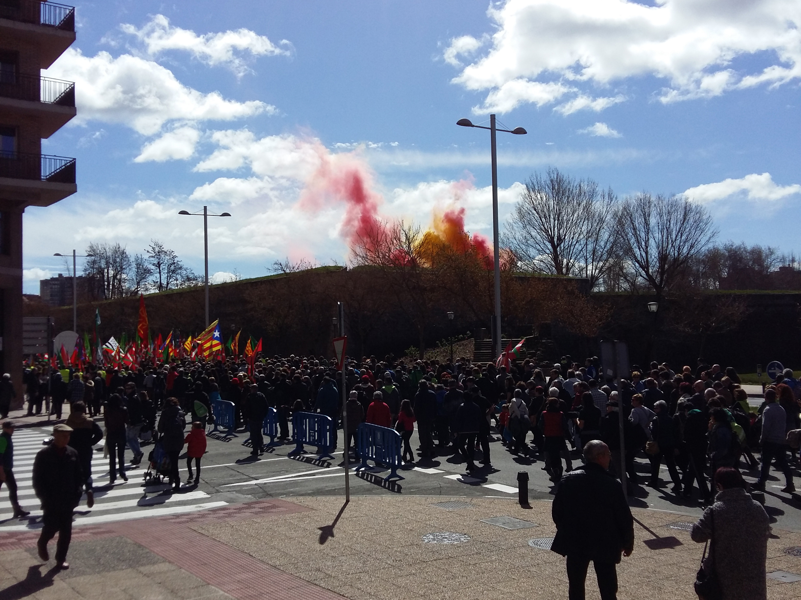 La Lupa del YA. Esta fotografía es de una acción realizada el fin de semana por un grupo de jóvenes que iluminaron con los colores de la bandera española la enésima manifestación separatista en Pamplona con ocasión del autodenominado Aberri Eguna. No hace falta decir que ni UPN, ni PP ni Ciudadanos estuvieron por allí...
