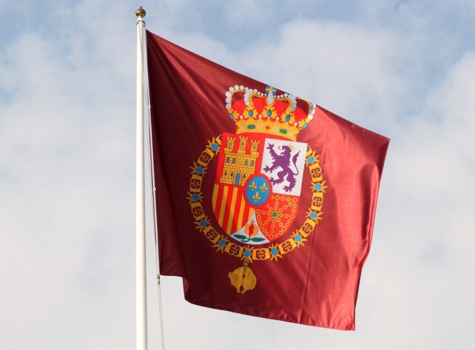 El nuevo escudo de armas de Felipe VI ya ondea en la bandera del Palacio de la Zarzuela. Las armas del nuevo monarca son, en primer lugar, un escudo cuartelado de gules con un castillo de oro, almenado, mazonado de sable y aclarado de azur, que es de Castilla.