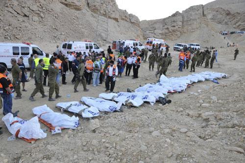 Redacción Madrid. 16 de diciembre. Al menos 24 personas han muerto y 27 han resultado heridas en un accidente ocurrido esta tarde cuando un autobús privado que en el que viajaban turistas rusos procedentes del aeropuerto de Eilat, en la costa sur de Israel, se salió de la carretera por la que circulaba y cayó en un barranco de más de 60 metros de profundidad.
