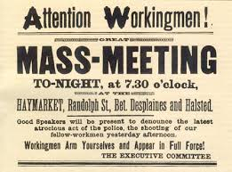Javier Paredes. Todo empezó para conmemorar los acontecimientos que habían tenido lugar en Chicago el 1 de mayo de 1885. Ese día se celebró una manifestación anarquista y en medio del alboroto se lanzó una bomba, que acabó con la vida de unos cuantos policías.