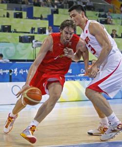 La peor versión de la España de Aíto derrotó a la anfitriona China, por 75-85, en la segunda jornada del torneo olímpico de baloncesto de los Juegos de Pekín, disputado en el Gimnasio Olímpico de Baloncesto, después de una prórroga (72-72) forzada por un robo de balón del escolta del DKV Joventut Ricky Rubio.