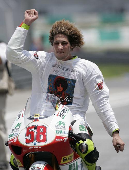 Redacción Madrid. 19 de octubre. El piloto italiano Marco Simoncelli (Gilera) se proclamó hoy campeón del mundo de 250cc tras la disputa del penúltimo Gran Premio de la temporada, el de Malasia, donde firmó el tercer puesto en una prueba que venció el español Álvaro Bautista (Aprilia), y donde el también transalpino Valentino Rossi (Yamaha) ganó la partida a Dani Pedrosa (Honda) en MotoGP.