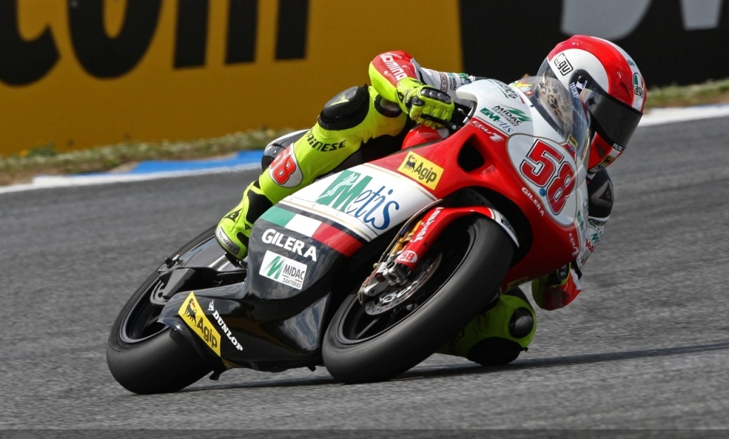 Redacción Madrid. 26 de octubre. El piloto italiano Marco Simoncelli (Gilera) logró su sexta victoria en el Mundial de 250cc, en el Gran Premio de la Comunidad Valenciana, último de la temporada, dónde el español Alvaro Bautista (Aprilia) consiguió subir al podio gracias a la caída del finlandés Mika Kallio (KTM) en la última vuelta.
