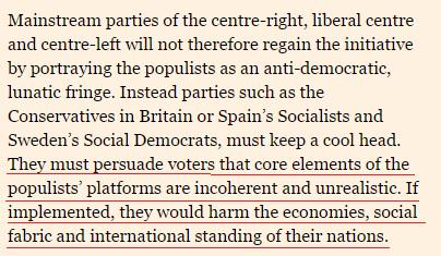 La Lupa del YA. El periodico inglés ya no se corta y manda un mensaje directo al partido Conservador inglés y al PSOE (no incluye al PP, por cierto) La manera de enfrentarse al populismo, en nuestro caso se entiende que de Podemos, no es acusarles de antidemócratas, sino mantener la cabeza fria.