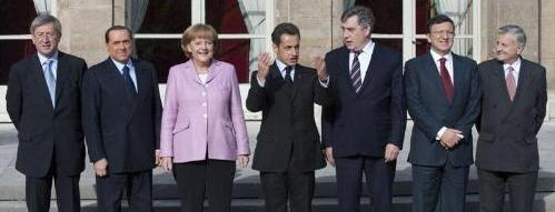 Redacción Madrid. 4 de Octubre. Aprovechando que no estaba Zapatero, las potencias europeas del G-8 (Francia, Alemania, Reino Unido e Italia) se han comprometido "solemnemente" a apoyar a las entidades bancarias y financieras frente a las actuales turbulencias financieras, según ha anunciado el presidente francés, Nicolás Sarkozy, al término de la minicumbre celebrada hoy en París."Cada Gobierno actuará con sus propios medios y métodos pero de manera coordinada con el resto de Estados europeos", decía Sarkozy, cuya figura política crece de forma proporcional a como disminuye la del presidente del Gobierno español.
