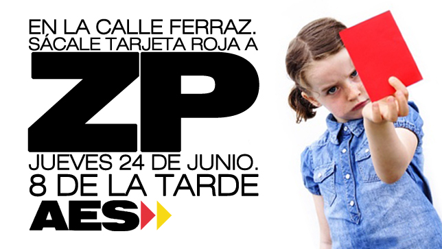 Rafael López-Dieguez Gamoneda. El próximo 24 de junio a las 20 horas Alternativa Española ha convocado una concentración en la calle Ferraz esquina a Buen Suceso, prácticamente frente a la sede nacional del PSOE, para sacar tarjeta roja al Presidente del Gobierno y decir no a las medidas económicas y sociales por él impulsadas.