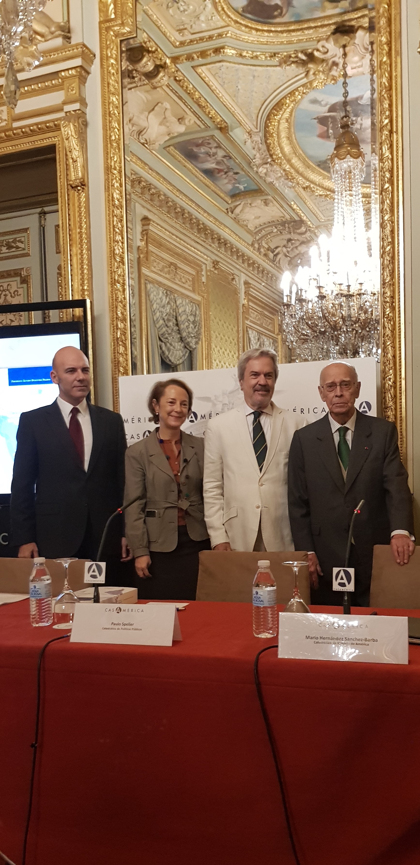 Al inicio, para entrar en calor, la diplomática Cecilia Yuste y Paulo Speller dieron paso a Marío Hernández Sánchez-Barba, sin duda el mayor experto en conocimiento panamericano. Y su intervención, lúcida y categórica, fue contundente. Estamos ante el inicio de la articulación del Mundo Ibérico.