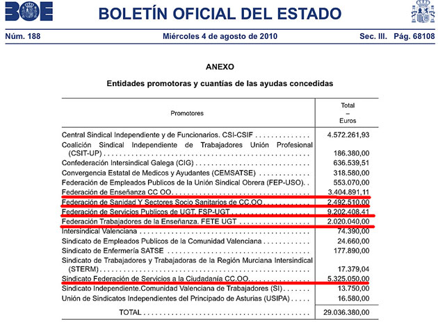 De esta forma es como el gobierno compra las voluntades y los votos de los ciudadanos. Mediante el uso de las subvenciones, que utilizan a su antojo. Millones y millones de euros concedidos a los sindicatos. Así les controlan. El documento del BOE es más que claro.