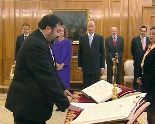 El acto, celebrado a las 10.30 horas, tuvo lugar sin la presencia, como marca la ley, del hasta ahora titular de la cartera. Caamaño prometió su cargo con la mano derecha apoyada en una mesa en la que podían verse un crucifijo, una Biblia y un ejemplar de la Constitución.