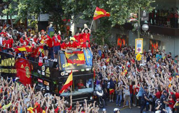 José Luis Orella. El triunfo de la selección en el campeonato del mundo de fútbol ha producido un increíble despertar patriótico, divorciado de la política, y que han protagonizado especialmente jóvenes e inmigrantes. Ciudades extrañas a la bandera nacional, por el miedo a las amenazas nacionalistas, como Bilbao, Barcelona o Pamplona, disfrutaron de movilizaciones masivas, que en el caso de la capital catalana llegaron a los 75.000 seguidores rojigualdas. Gritos de guerra, tan llamativos como: Soy español! Español! Español! Se pudieron oir por toda la plaza del castillo de Pamplona, en estos sanfermines, ante la desesperación de los proetarras, que intentaron evitarlo a través de sus sicarios.