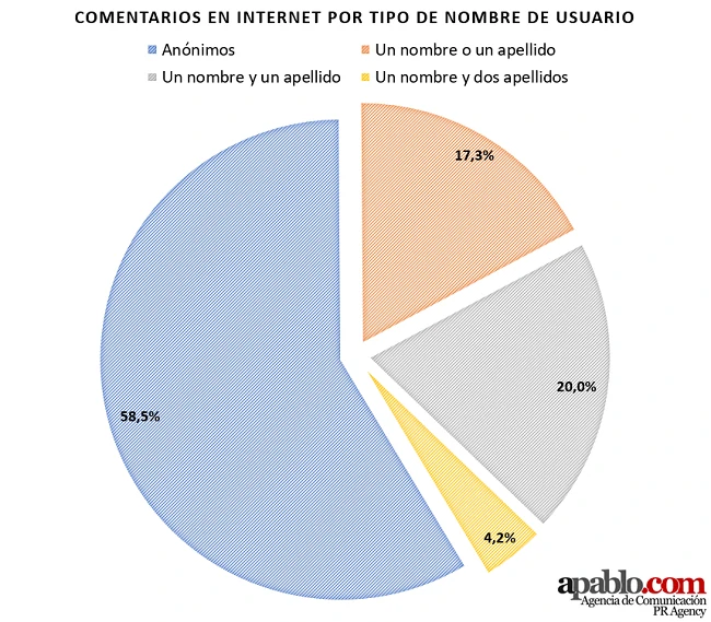 El 17,3% de los nombres de usuario analizados ha incluido al menos un nombre o un apellido, el 20% tiene un nombre y un apellido y el 4,2% aparece firmado por un nombre y dos apellidos.