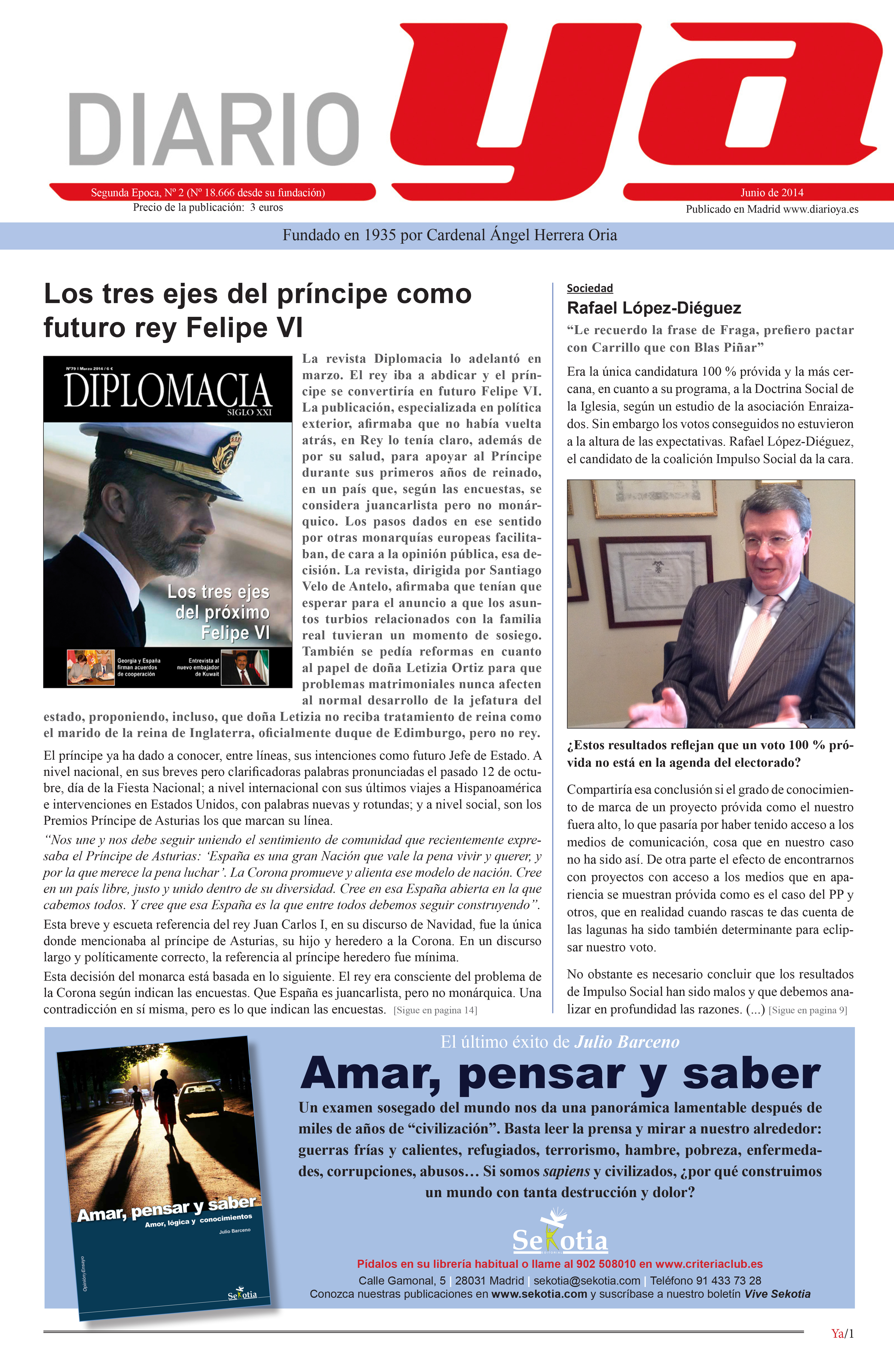 Ya se ha publicado el Nº 2 del Diario YA en papel (Nª 18.666 desde su fundación) y aquí se lo ofrecemos, gratuito, en versión digital. Que lo disfruten. LEER http://issuu.com/periodicoya/docs/diario_ya_2__papel