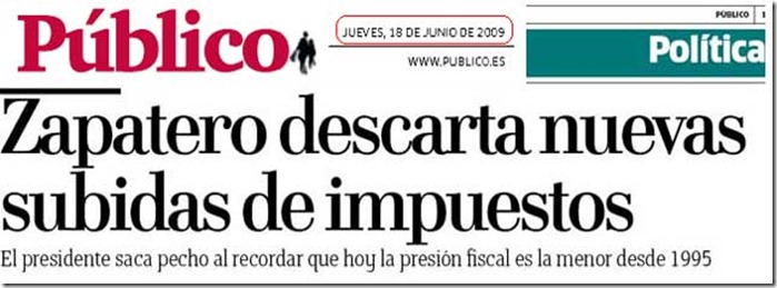 18 DE JUNIO DE 2009; ZAPATERO DICE QUE NO SE SUBIRÁN DE NUEVO LOS IMPUESTOS.