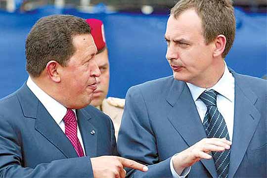 Si el señor H.Chávez no fuera un golpista (recuerden que intentó asumir el poder por medio de un golpe militar, fracasado) y un sujeto que ha tenido la cara dura de criticar la deposición del señor Zelaya ,de Honduras, calificándola de golpe de Estado; cuando fueron el Senado y la misma Corte de Justicia hondureñas los que ordenaron el cese del mandatario, por haberse querido perpetuar en el poder mediante una ley contraria a la Constitución; sin duda hubiera colaborado con la Justicia española para capturar a los delincuentes y extraditarlos a España; pero, como no es así, ha seguido su impulso de tirano absolutista y ha preferido arremeter contra España y la derecha, olvidándose de que en este país, por desgracia para los españoles, ya hace seis años que está gobernado por un gobierno de izquierdas presidido por un amigo suyo, el señor Rodríguez Zapatero que, cuando hace falta, le lame los zapatos y le presta sumisión fielmente apoyado por su sectario ayudante, el señor Moratinos. Si el señor Chávez decide amenazarnos –para el caso de que persistamos incordiándole con peticiones como la del juez Velasco –, con un chantaje; citando, como posibles perjudicados por una ruptura diplomática, a los empresarios españoles afincados en su país; en España a ZP y Moratinos se les encoge el ombligo y se deshacen en disculpas ante el dictador, dándoles la culpa del “desaguisado” a la Justicia y al señor Aznar.