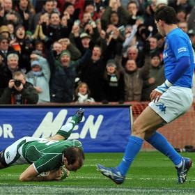 El abultado marcador se debió a los cinco ensayos que consiguió la 'maquina verde' destacando especialmente el último logrado en los minutos finales del partido por O'Driscoll, con la defensa de la selección 'azzurra', muy descentrada.