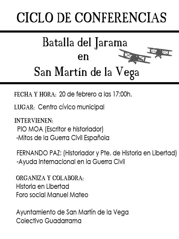 Carteles informativos de las Jornadas de Historia sobre la Batalla del Jarama (1937) con presencia de Pío Moa y Fernando Paz. San Martín de la Vega (Madrid), 20-febrero-2010.