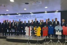 La Expo Fútbol por la Paz auspiciada por laAcademia de la Diplomacia ha sido expuesta en la sede central deLALIGA en Madrid.Confeccionada con la colaboración de 100 embajadas que han donado las camisetas de sus selecciones nacionales, la exposición pretende demostrar que el deporte y en concreto el fútbol, es un medio para conseguir un mejor conocimiento entre las naciones y culturas y es a su vez un mensaje contra el racismo.