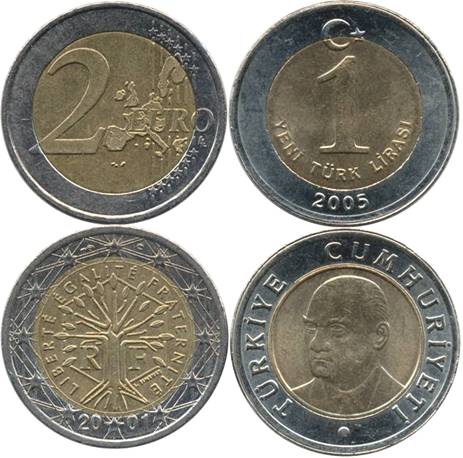 Desde el 1 de Enero, en Turquía tienen una nueva moneda, la "nueva lira turca" (Yeni Turk Lirasi ), que sustituye a la lira antigua, bastante desvalorizada. La nueva lira es bastante parecida a la moneda de 2 euros. Si comparas las 2 monedas, comprobarás que aparentemente son iguales (una parte de cobre central rodeado por una parte de niquel), teniendo también el mismo tamaño.