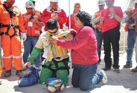 Gonzalo Rojas Sánchez. Manuel Sepúlveda no sólo ascendió lleno de energías a la superficie, sino que antes de subir, también se dio el tiempo y encontró la imaginación para agradecer a sus rescatistas con lo más propio de esos 70 días: unas piedras del fondo de la mina. Llegó, se agachó, sacó el material de una bolsa y lo repartió a las autoridades, como si de Navidad se tratase.