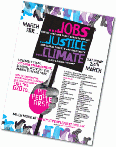 En Gran Bretaña se han manifestado de la mano sindicatos, servicios de ayuda, grupos religiosos y ecologistas bajo el eslogan "Las personas primero", demandando reformas para una economía mundial más justa.