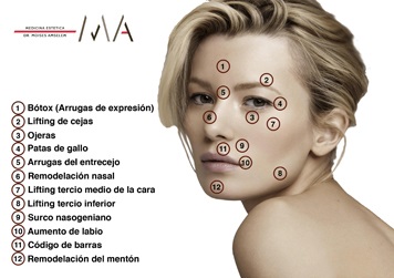 El bótox está indicado para prevenir y disminuir las arrugas de expresión (1),(4),(5), en la región de la frente, entrecejo o patas de gallo. Para elevar las cejas y conseguir una mirada más abierta y natural, se combinan determinados puntos de inyección de ácido hialurónico mediante la técnica del sol radiante (2).