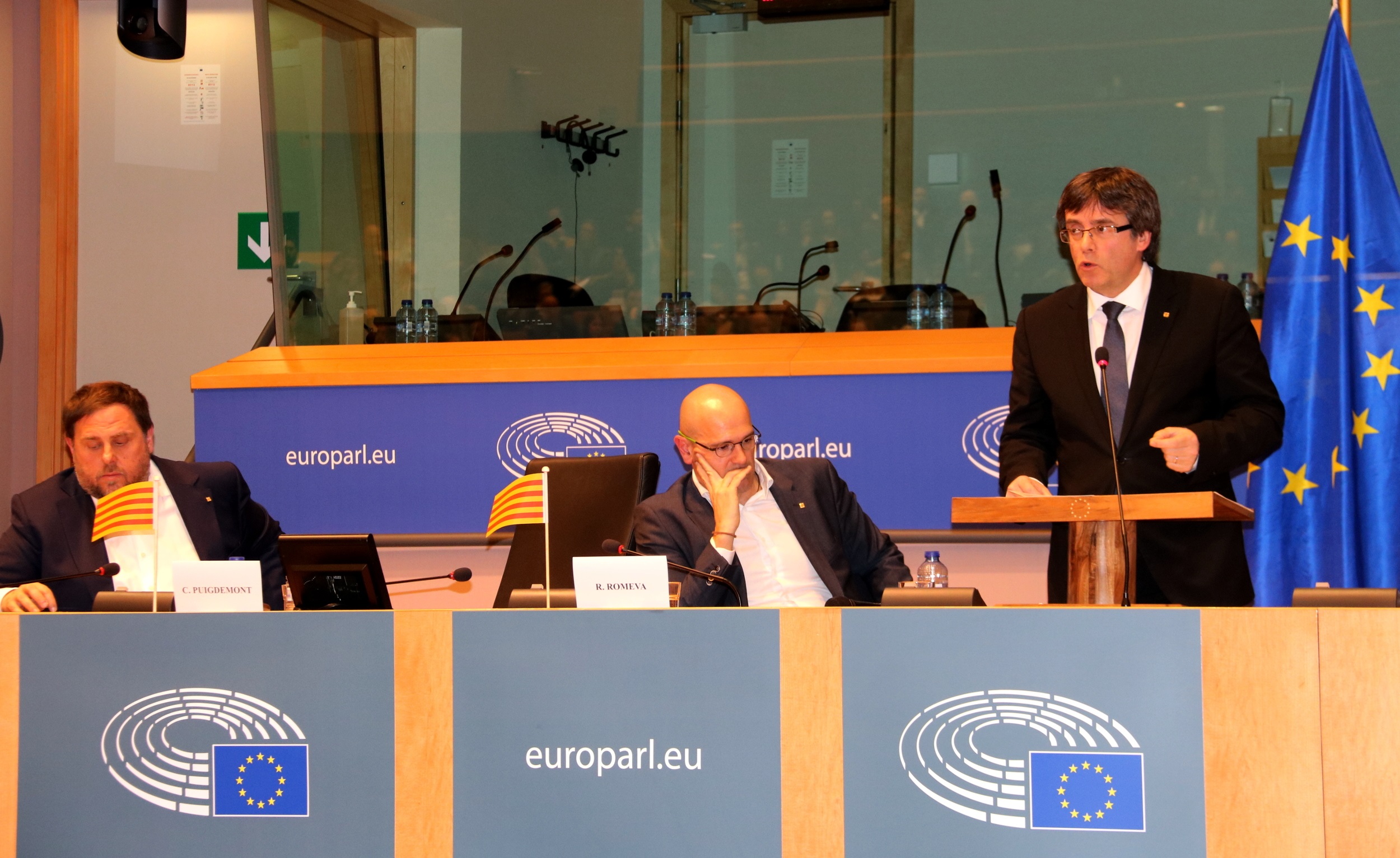 Puigdemont, Romeva y Junqueras ‘vendieron’ en inglés, francés y catalán que en Cataluña habría referéndum en el 2017. La foto la ha consumido todo el mundo. El mensaje, también.