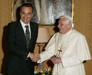 La religión católica, mayoritaria en nuestro país, fue el domingo pasado abordada con falta de respeto e intolerancia por parte del presidente del Gobierno. Zapatero hizo gala en un mitin de no haber ido, a propósito, a las misas del Papa, en un gesto de desprecio a un jefe de Estado que es, también, una relevante autoridad para la mayoría de los españoles, una revista inglesa, nada próxima a posturas clericales, le consideraba la sexta persona más influyente del mundo, justo detrás de su gran amigo Obama con quien si va a rezar. Lástima que entre los 50 más influyentes del mundo, que presentaba la revista citada, no está Zapatero, tal vez actuaciones como estas nos dan el porqué. Y es que mientras Zapatero arremete contra el Papa, según la Memoria anual de actividades de la Iglesia en España, los centros asistenciales católicos atendieron en 2008 a cerca de 3 millones de personas.
