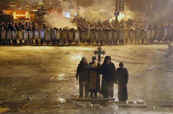 La Lupa del YA. Ha tenido que ser la Iglesia Ortodoxa Ucraniana,a través de sus monjes, quienes han intercedido entre la policía y los manifestantes.
