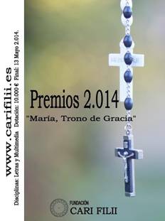 La Fundación Cari Filii ha convocado la IIIª edición de sus premios anuales a la creatividad en la alabanza a la Virgen María. En 2014 girarán en torno al lema María, Trono de Gracia, y como en ediciones anteriores se admitirán trabajos en formato escrito y en formato multimedia: fotografía, música y vídeo. Podrán participar personas o grupos de personas residentes en España y mayores de 12 años de edad. El plazo de admisión de obras candidatas finaliza el 13 de mayo, festividad de Nuestra Señora de Fátima, y la dotación para premios asciende a 10.000 euros, que se distribuirán en dos primeros premios (dos viajes a Tierra Santa para dos personas) y dos segundos premios (dos viajes a Medjugorje para dos personas). Por tanto, un total de al menos ocho personas resultarán agraciadas en función de la “creatividad, belleza y originalidad” de la obra presentada y su acomodación al lema de la convocatoria, que serán juzgadas por un jurado independiente y experto en la materia.