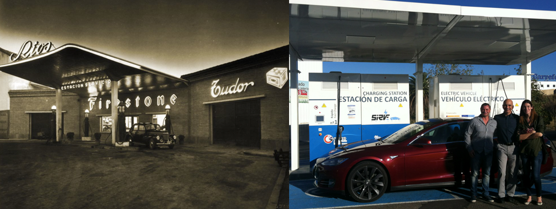 La estación de recarga está situada en La emblemática Estación de Servicio del Portazgo propiedad de Zoilo Ríos. “En 1927 mi abuelo se planteó ampliar los servicios a la comunidad que hasta entonces facilitaban con la tienda de ultramarinos de su padre, instalando un primer surtidor de gasolina.”
