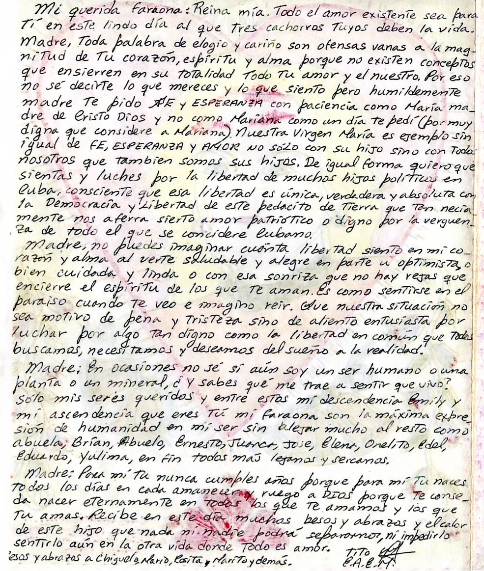 “Egberto pide que todos acudan a la organización Mundial de Salud y a la Organización Panamericana de Salud para que se preocupen por la falta de atención médica y adecuada contra su persona y para que apelen ante las autoridades,” afirmó María Cristina Labrada.