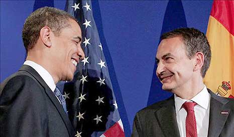 Hay algo más que conviene tener en cuenta. El señor Obama, que no tiene un pelo de tonto, se ha dado cuenta de que Zapatero está enfangando hasta la coronilla; desacreditado ante pueblo español y que anda despistado, dando palos de ciego, intentando salir como pueda de una situación catastrófica en la que ha metido a nuestra economía; de modo que no tiene otra esperanza que conseguir que los EE.UU nos den una mano para poder coger aliento, antes de que, su propia incompetencia le conduzca a una situación social, motivada por el crecimiento incesante del paro y el deterioro constante de nuestra deuda, que pudiera llegar a desbordar a estos sindicatos, que tanto le apoyan, hasta el punto de que no lograran contener a las masas de obreros que pudieran salir a las calles para manifestar su descontento ante una situación insoportable. Esto sería la puntilla para el PSOE.