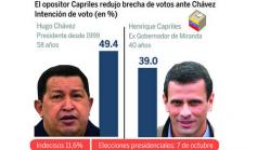 De las seis principales encuestas publicadas en el mes de septiembre, la mitad favorece a cada uno de los candidatos. Presidente y opositor afirman allá donde van que su victoria está asegurada y que si las urnas no reflejaran ese resultado se debería sin duda a una trampa electoral; así, los dos elevaron el tono de campaña alertando de un posible conflicto armado en el caso de que el perdedor -para Capriles será Chávez, para Chávez será Capriles- no acepte deportivamente su fracaso. Y si hacemos caso de sus palabras y escuchamos con atención las acusaciones mutuas, entenderemos que no es un escenario improbable.
