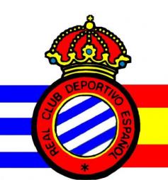 imagen, dicha bandera con el antiguo escudo del REAL CLUB DEPORTIVO ESPAÑOL en el