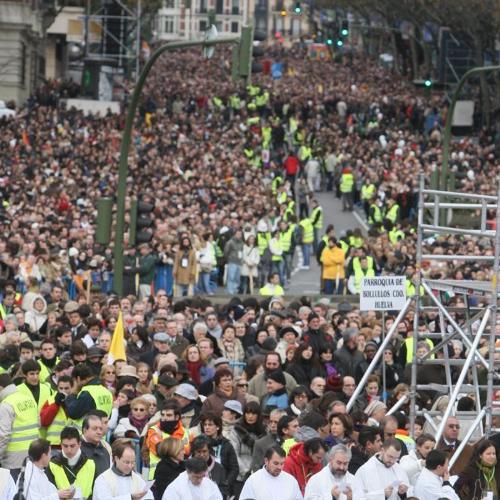 Muchísimas familias se han reunido hoy en la plaza de Colón de Madrid para testimoniar la importancia de una institución querida por Dios. Jesús mismo quiso nacer en el seno de una familia y hoy celebramos la fiesta del hogar de Nazaret, que es la Sagrada Familia.