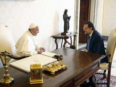 Ciudad del Vaticano. El Papa Francisco recibió en audiencia en el Vaticano al presidente del Gobierno español, Mariano Rajoy, con quien habló a solas durante 24 minutos. Francisco recibió a Rajoy en la Biblioteca Privada y, tras un cordial saludo, se sentaron frente a frente. A la espera de saber si elPapa abroncó a Rajoy por mantener en España el aborto o el matrimonio homosexual, el PP tiene el guiño que buscaba para su electorado católico, hasta el punto que la foto fue colgada en el twitter de Rajoy cuando aún no había acabado la reunión.