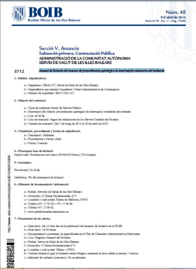 Anunci de licitació del concurs de procediments quirúrgics de interrupció voluntària del embaràs