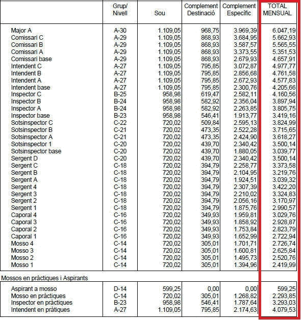 Son sueldos mucho mayores que los de la Policia Nacional o la Guardia Civil. Son el embrión del proyecto de Ejercito Nacional en una Cataluña sometida al secesionismo. Y todo pagado con los impuestos de todos los españoles.