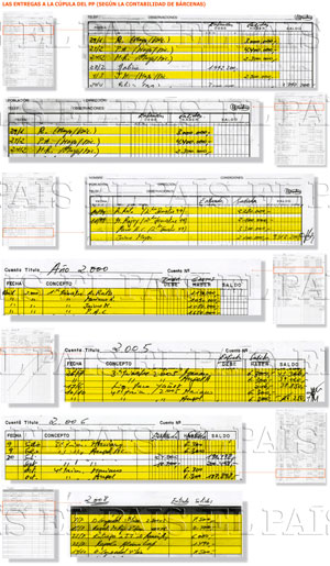Redacción. Ya ha salido la contabilidad de Álvaro Lapuerta, tesorero del PP entre 1993 y 2008, y de Luis Bárcenas, tesorero en 2009, desvela pagos periódicos, trimestrales o semestrales a toda la cúpula del Partido Popular, incluyendo al actual presidente del Gobierno, Mariano Rajoy, y a la secretaria general, María Dolores de Cospedal, según publica el diario 'El País'.