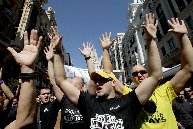 Redacción. Manifestación espontánea el viernes en Madrid que subió varios grados las ya altas temperaturas existentes en la capital de España. Funcionarios que salieron a la calle y que, en señal de protesta, cortaron el ya denso tráfico existente en la zona central de Madrid. En la tercera jornada consecutiva de protestas contra las medidas de austeridad impuestas por el Gobierno del PP (Reuters)
