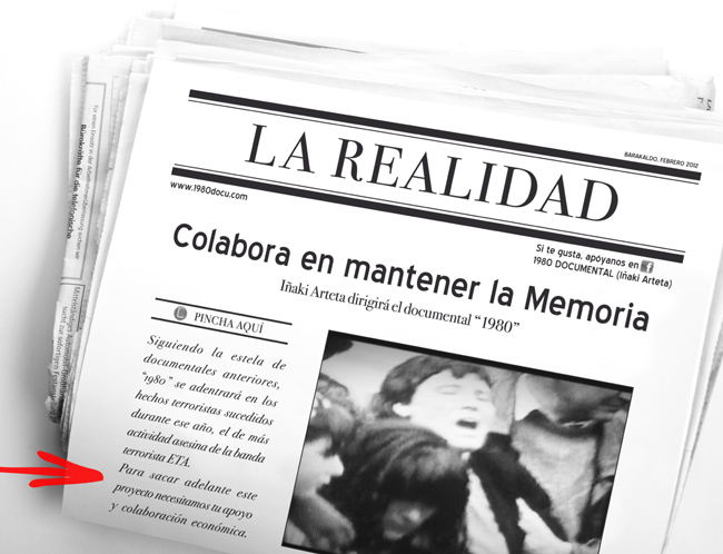 Redacción. Siguiendo la estela de los proyectos anteriores realizados por Iñaki Arteta, el documental “1980” se adentrará en los hechos terroristas sucedidos durante ese año, el de más actividad asesina de la banda terrorista ETA. El recorrido por este año sangriento se efectuará a través de los recuerdos y opiniones de varios periodistas, un pensador, una víctima y un policía, que de diferentes maneras y con distintas edades vivieron aquel año. Arteta busca financiación y ofrece colaborar en la producción.