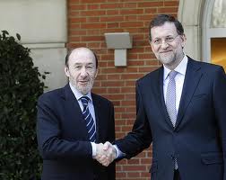 Pedro Sáez Martínez de Ubago. El presidente del gobierno de España, Mariano Rajoy y el nuevo secretario general del PSOE, Alfredo Pérez, han celebrado su primer encuentro oficial, en una audiencia de aproximadamente cuatro horas en que el primero ha recibido al segundo en el palacio de La Moncloa. Y, como es lógico en dos partidos que han llevado a España al mayor grado de crispación a base de una política de confrontación generalizada, en muy poco, y desde luego, en nada esencial, se han podido poner de acuerdo.