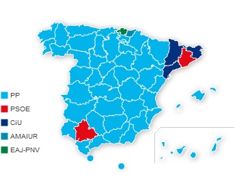 Redacción. La victoria de Mariano Rajoy en la noche electoral del 20N coloca al Partido Popular al frente de prácticamente todos los estamentos de poder en España, Gobierno, Comunidades Autónomas, Ayuntamientos...