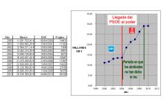 Redacción. Resulta muy interesante saber por qué tenían la boca tapada. Lo que se descubre mirando en el BOE!! Una grafica con la pasta recibida por los sindicatos desde 2000. Parece existir una curiosa relación entre la pendiente de la gráfica y el afán reivindicativo de los sindicalistas... En fin, casualidades de la vida.... El gráfico es lo más explicito que hay. El PP ya empezó a subir las subvenciones a razón de medio millón de euros al año. Pero con la llegada del PSOE, el incremento es simplemente escandaloso. Y todo con el engaño de los sindicatos al trabajador, al que manipula para su propio bien. Sin palabras...