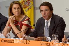 Diario Ya. Este viernes el ex presidente del Gobierno y presidente de la Fundación FAES, José María Aznar y la actual secretaria general del PP y Presidenta de la Junta de Comunidades de Castilla La Mancha, María Dolores de Cospedal, han unificado fuerzas para apoyar al ejecutivo de Mariano Rajoy en este complicado momento político en el que se debate en Bruselas la ayuda a la economía española y el futuro del euro, teniendo como escenario la inauguración del Campus FAES 2012 en Navacerrada (Madrid).