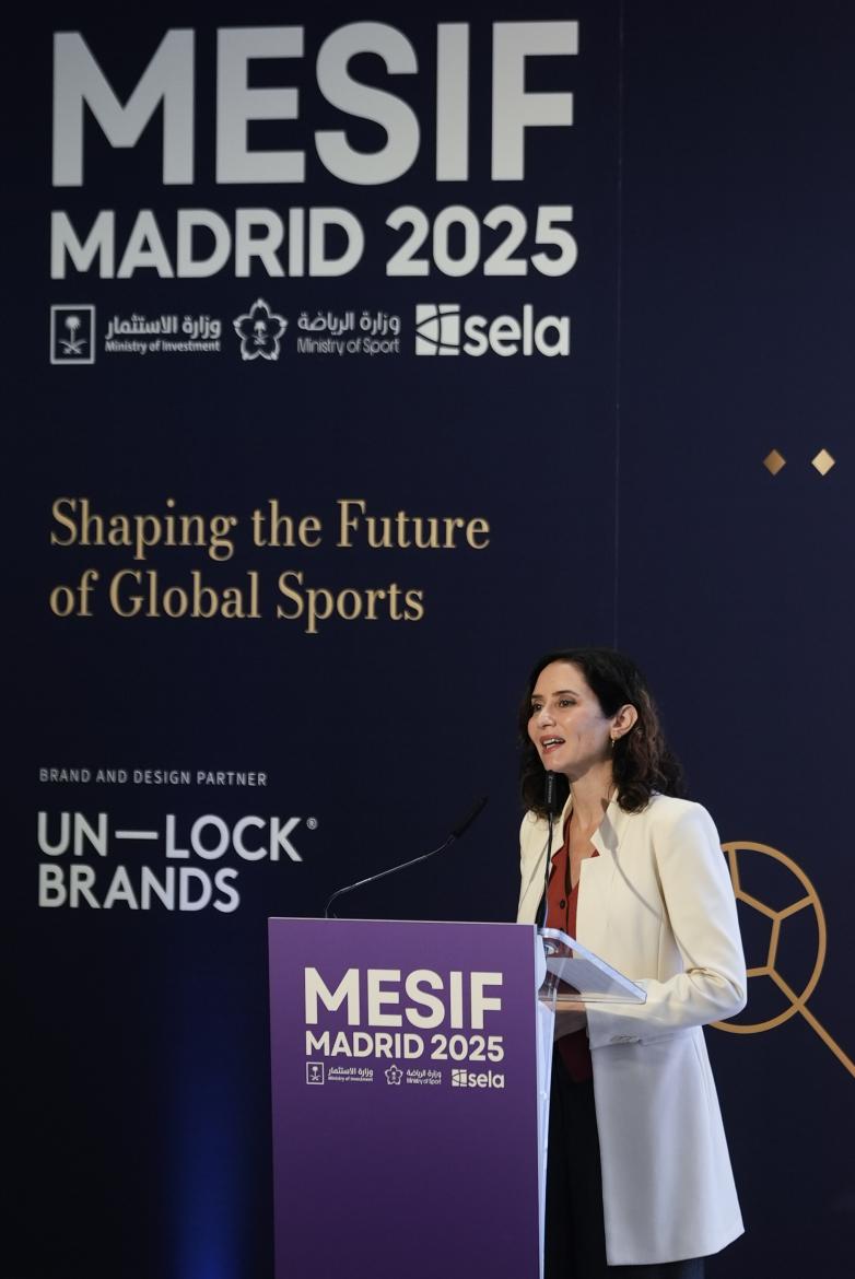 La presidenta de la Comunidad de Madrid, Isabel Díaz Ayuso, ha participado hoy en el foro de inversiones deportivas de Oriente Medio Middle East Sports Investment Forum (MESIF), celebrado en el estadio Santiago Bernabéu de la capital, donde ha destacado que la región es el principal destino de los negocios de estos países fuera de sus fronteras, con casi el 80% del total nacional y 12.000 millones de euros. “Venir a Madrid es pensar en vida, familias, alegría y prosperidad”, ha asegurado.